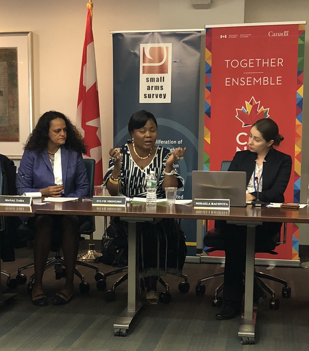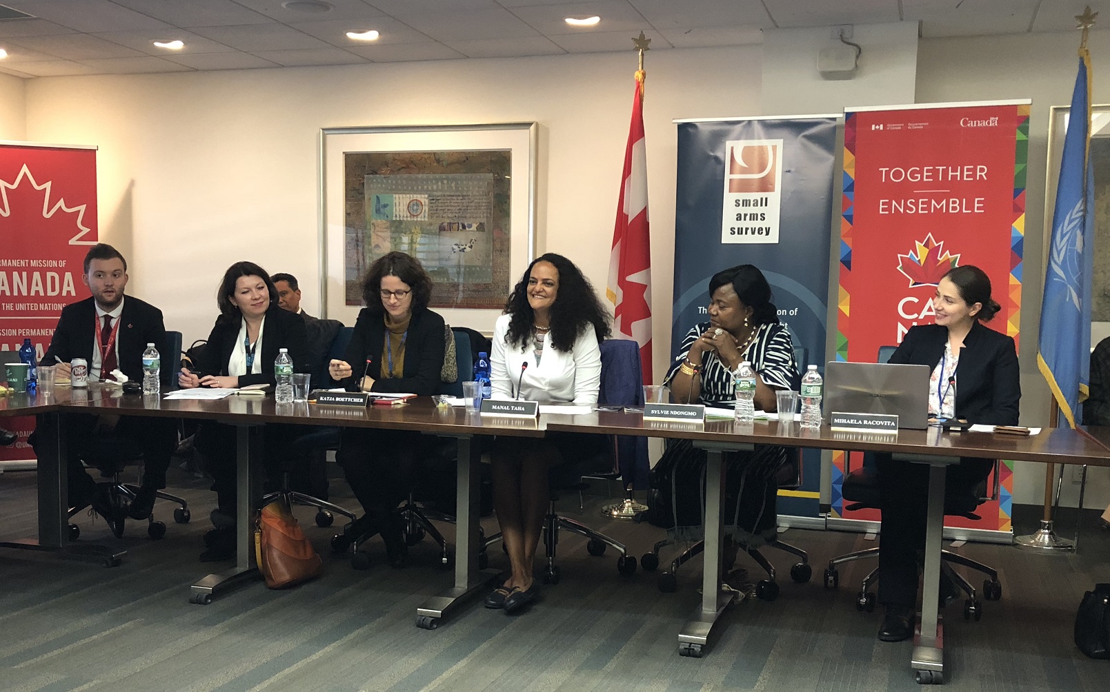 On 25 October, a panel discussion entitled Beyond the Buzz: Gender in Arms Control was held as a side event of the First Committee on Disarmament and International Security. It was jointly organized by the Permanent Mission of Canada to the United Nations and Small Arms Survey.