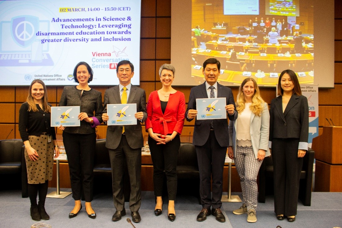 In the latest edition of the Vienna Conversation Series, the United Nations Office for Disarmament Affairs (UNODA) Vienna Office, in partnership with the Permanent Missions of the Kyrgyz Republic and the Republic of Korea, hosted a hybrid event entitled “Advancements in Science & Technology: Leveraging disarmament education towards greater diversity and inclusion” on Thursday, 2 March 2023.