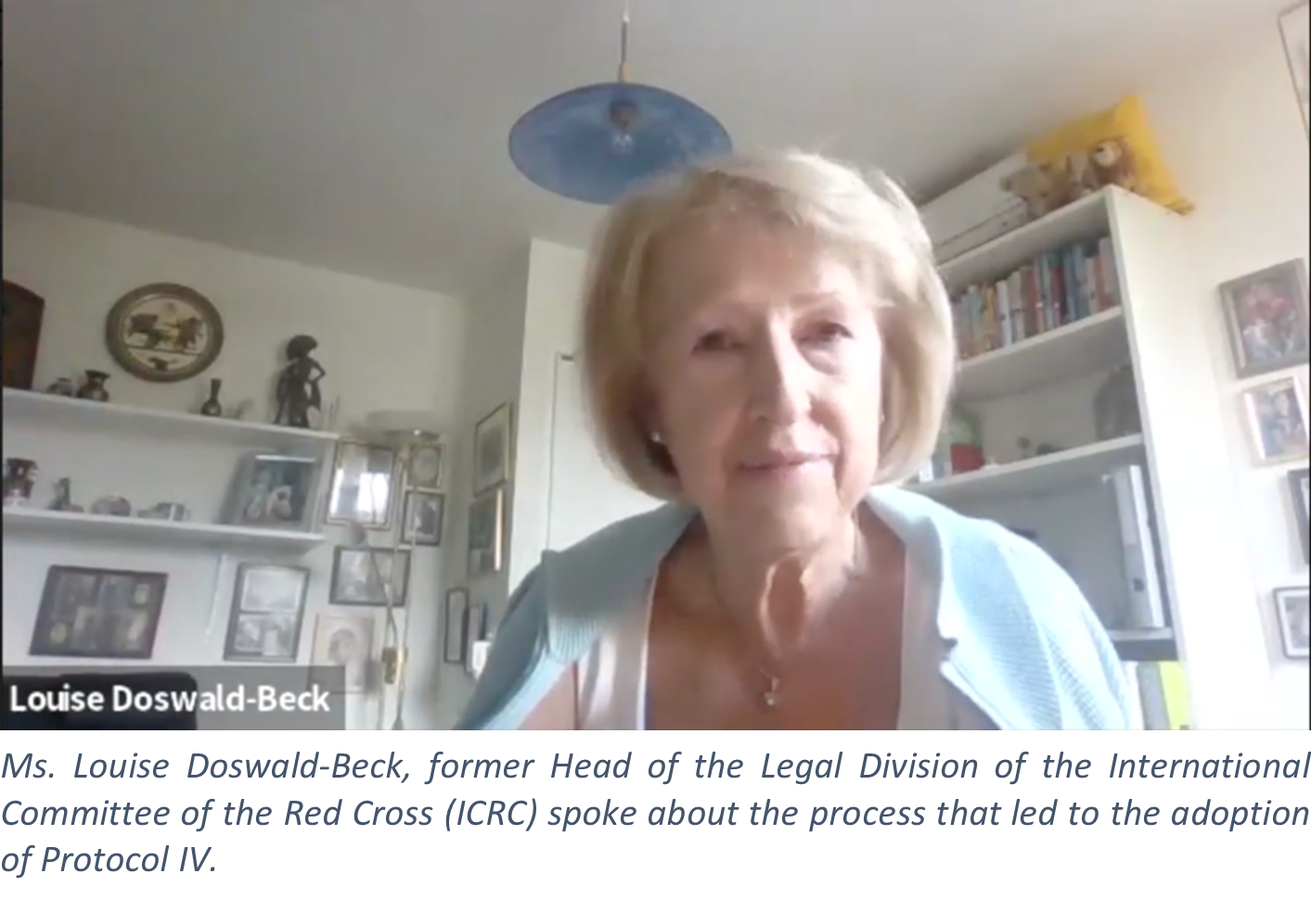 Nearly twenty years after its adoption, the webinar brought together expert speakers to discuss the historical negotiation processes, the Protocol’s relevance to international humanitarian law, and the lessons learned that could inform and guide ongoing and future discussions of relevance to the CCW. The first speaker, Ms. Louise Doswald-Beck, former Head of the Legal Division of the International Committee of the Red Cross (ICRC), provided an overview of the unique historical process that led to the adoption of Protocol IV. She highlighted the fundamental role that Sweden played in bringing the issue of blinding laser weapons to the attention of the international community and the in-depth research and expert meetings that the ICRC conducted on this topic. She noted that, once the defence industry grew closer to possessing the technology and the means to mass produce these weapons, the topic became rapidly relevant for the international community and momentum gathered towards establishing a prohibition. The challenge was then to devise a formula that would prohibit the use of laser as a blinding weapon without hindering the development of laser technology for civilian and other military applications.