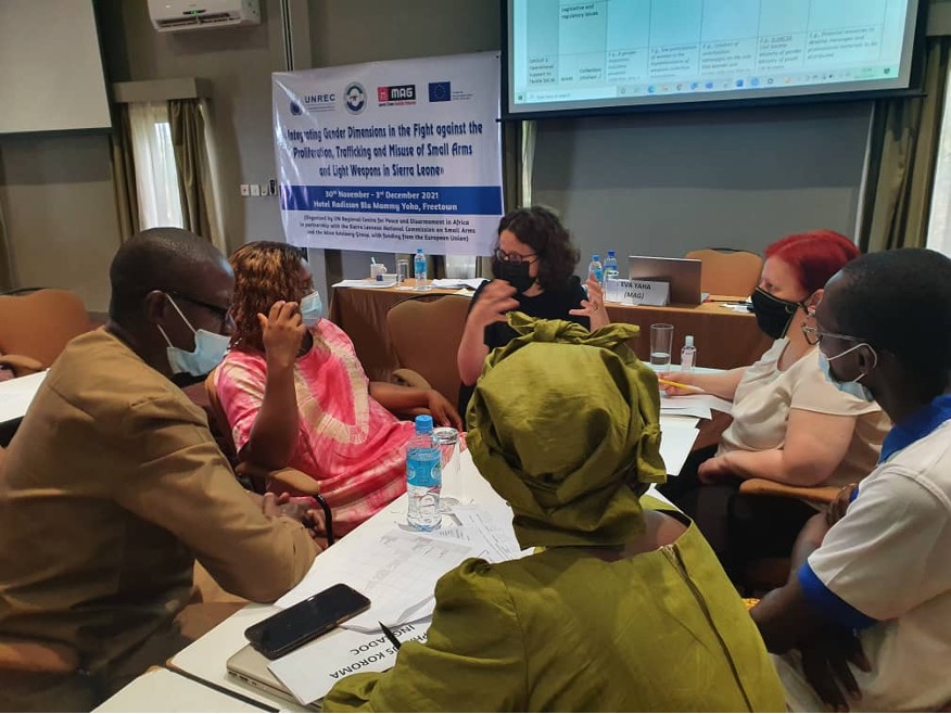 From 30 November to 3 December 2021, the United Nations Regional Centre for Peace and Disarmament in Africa (UNREC) partnered with the Sierra Leone National Commission on Small Arms and Light Weapons (SLeNCSA) and the Mines Advisory Group International (MAG) to conduct a series of capacity-building activities aimed at ensuring that gender considerations are systematically integrated in small arms control policies and programmes in Sierra Leone.