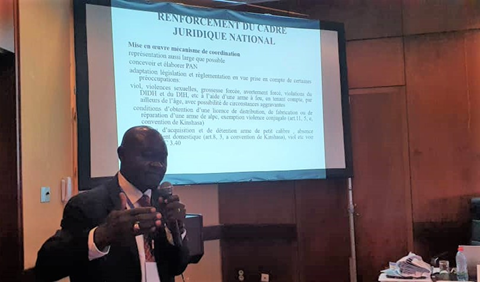 Colonel Jacques Mvom and Colonel Floribert Nyako, two small arms control experts supporting the national government in the implementation of small arms control initiatives, reiterated the importance of incorporating gender dimensions into legislation. They stressed the need to adapt firearms legislation and regulations so that they take into account issues such as rape, sexual violence, forced pregnancy, forced abortion and human rights violations as well as the absence of domestic violence history as a precondition for small arms licensing processes and the permission to poses such weapons.