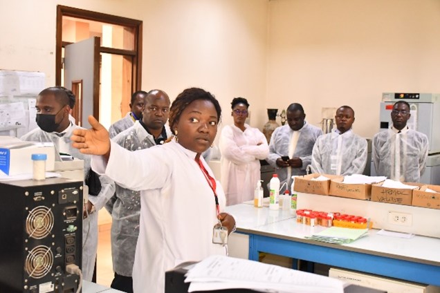Staff of Centre Pasteur du Cameroun explains to participations the biosafety and biosecurity measures in place at the facility