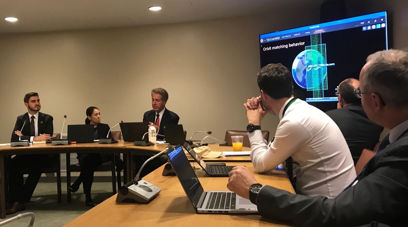 Mr. Bob Hall, Technical Director of Analytical Graphics Inc, started off the discussion by highlighting  how emerging technology has led to an explosion of commercial capabilities that could support analysts in monitoring activities over an extended period. His company, for example, was able to use data from the public domain – that was provided by the United States – to conduct observation. His company tracked the movement of the Russian Luch satellite in the geosynchronous (GEO) belt as it maneuvered close to satellites operated by other entities. He made a particular point about an abrupt maneuver made by Luch, after the United States publically disclosed the identity of a military satellite orbiting nearby. This event, he said, underscores the connection between political signaling, risk reduction and transparency in outer space activities. A second demonstration displayed tracking data of a satellite apparently performing post-insertion testing in synchronous with its discarded booster before maneuvering to its final orbit.