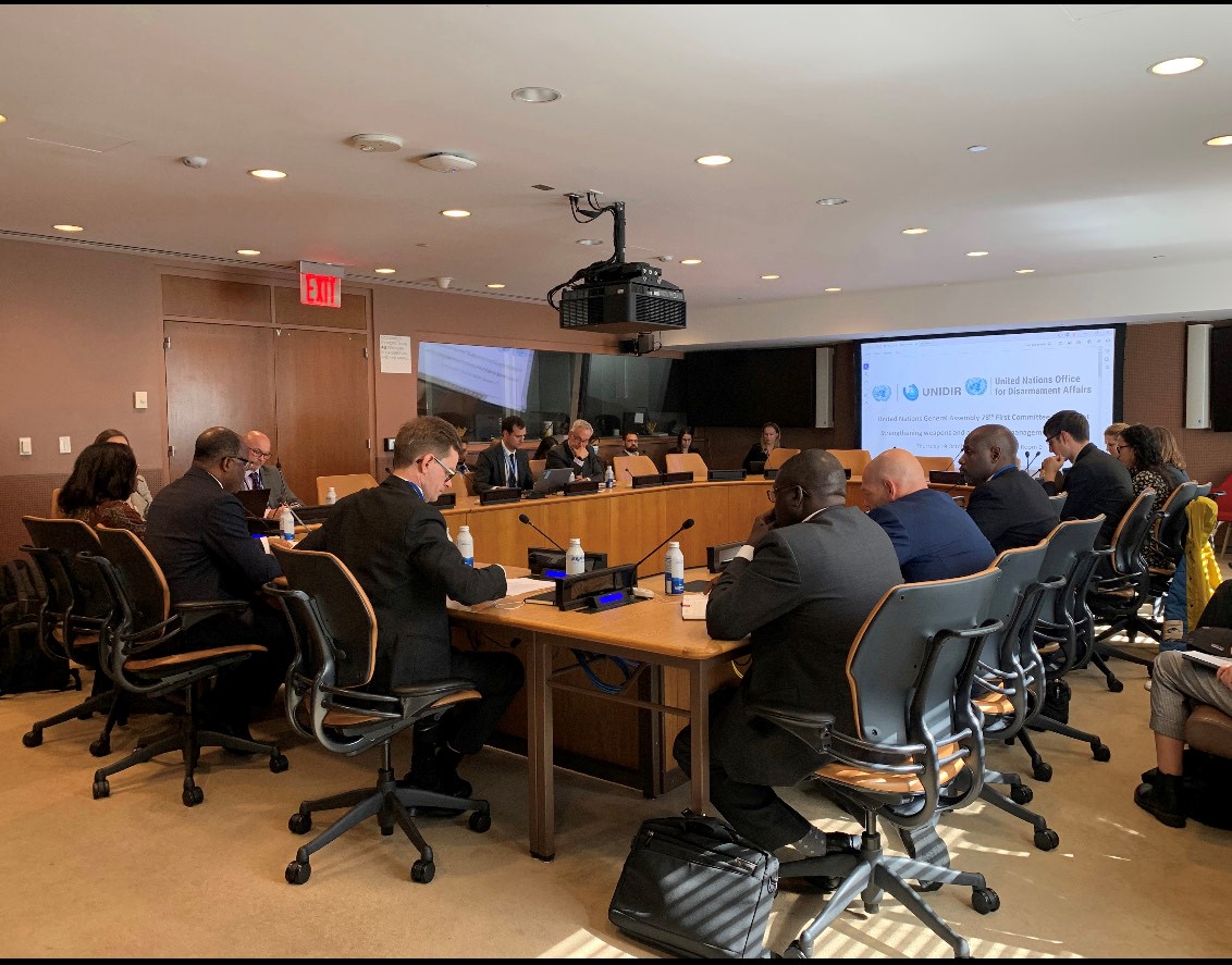 The United Nations Office of Disarmament Affairs (UNODA) and the United Nations Institute for Disarmament Research (UNIDIR) hosted a side event on strengthening weapons and ammunition management (WAM) in Africa. Panelists took stock of international, regional and national efforts on WAM policy and practice in Africa, sharing insights on cooperation and assistance opportunities, challenges and examples of progress across Africa for preventing the trafficking and diversion of conventional weapons and ammunition, and mitigating the risk of unplanned explosions of ammunition.