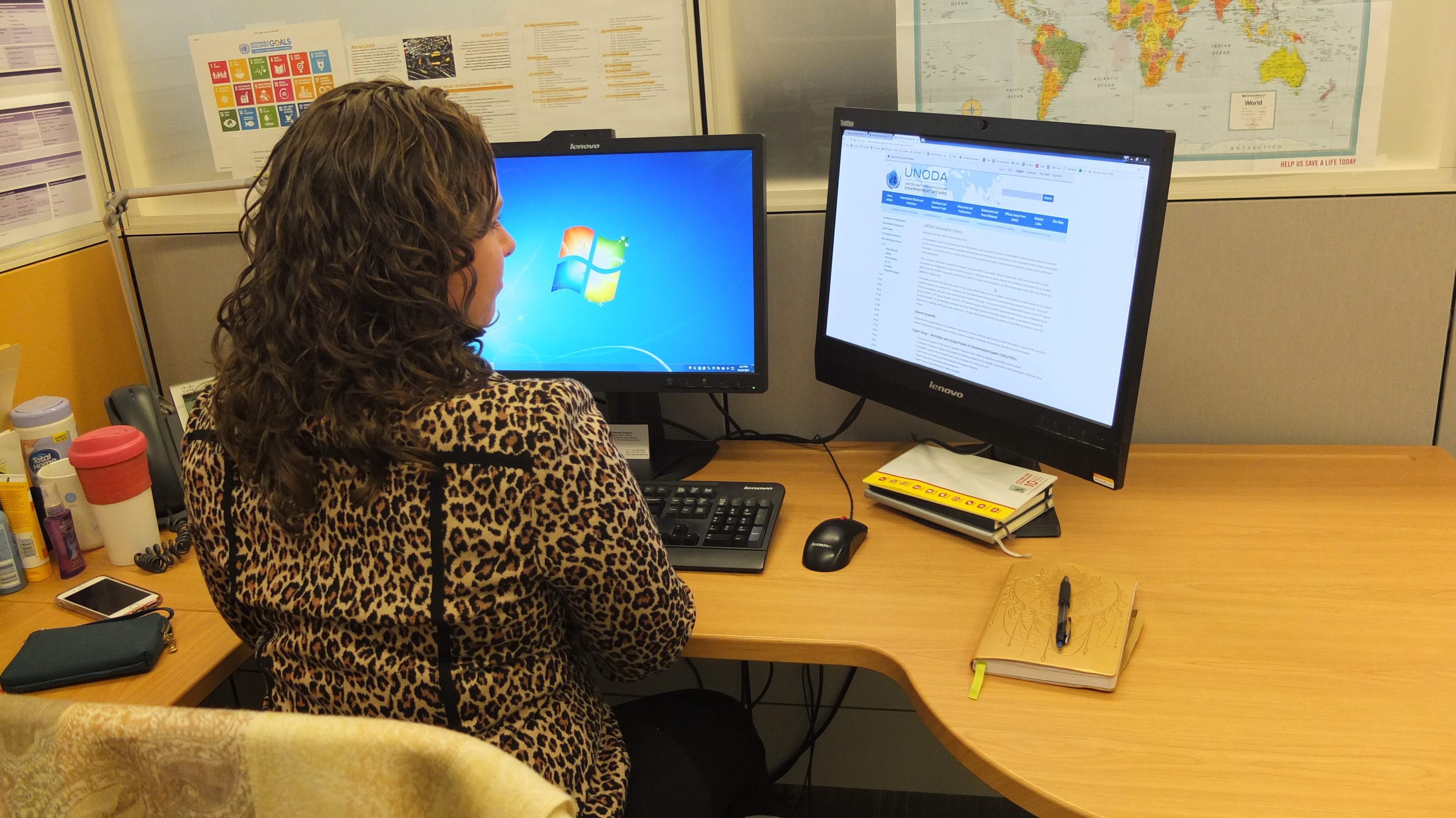 UNODA Political Affairs Officer Katherine Prizeman using the Digital Library.