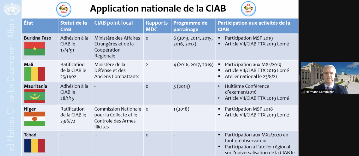 Dr. Alex Lampalzer, Deputy Chief of the BWC ISU, outlined the status of national implementation of the BWC in the G5 Sahel countries