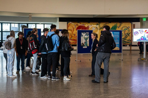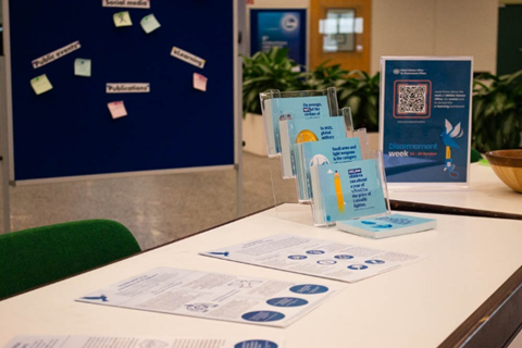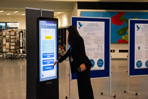 Visitors were invited to take part in an interactive quiz on the totem screen. Materials for further perusal were available on the table.