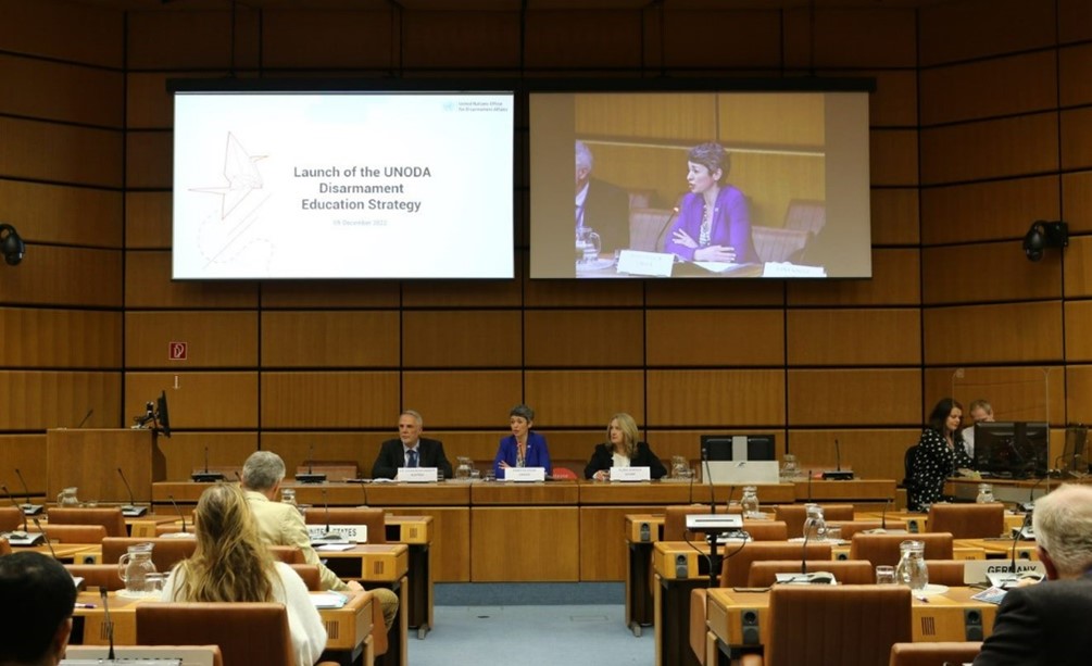 In a “soft launch” event held in Vienna on 5 December 2022, the United Nations Office for Disarmament Affairs (UNODA) announced the publication of its first ever Disarmament Education Strategy. The audience included members of the local diplomatic community and the United Nations family, representatives of regional and civil society organizations, as well as past and present staff of the UNODA Vienna Office.