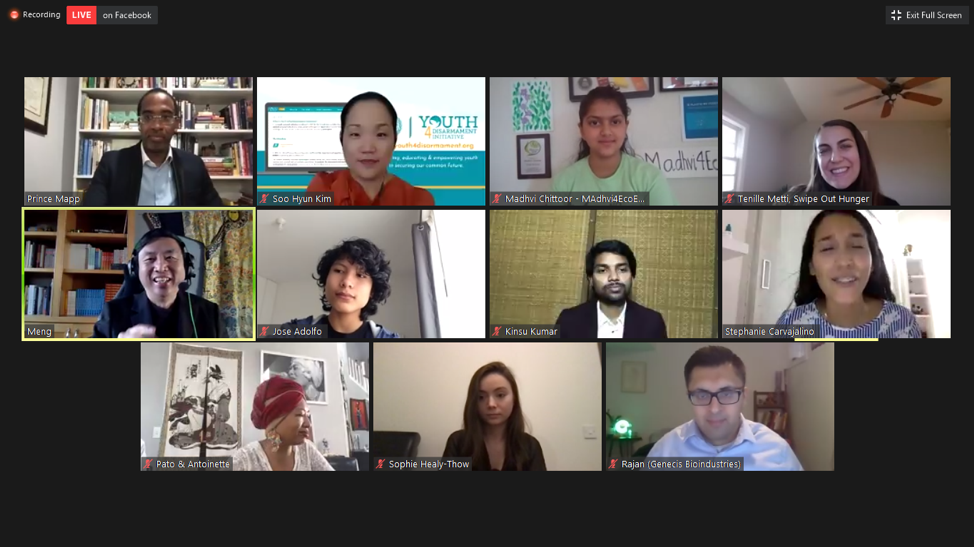 Finalists of the #75WordsForDisarmament Youth Contest meet with the High Representative for Disarmament Affairs, Ms. Izumi Nakamitsu for a virtual photo opportunity.