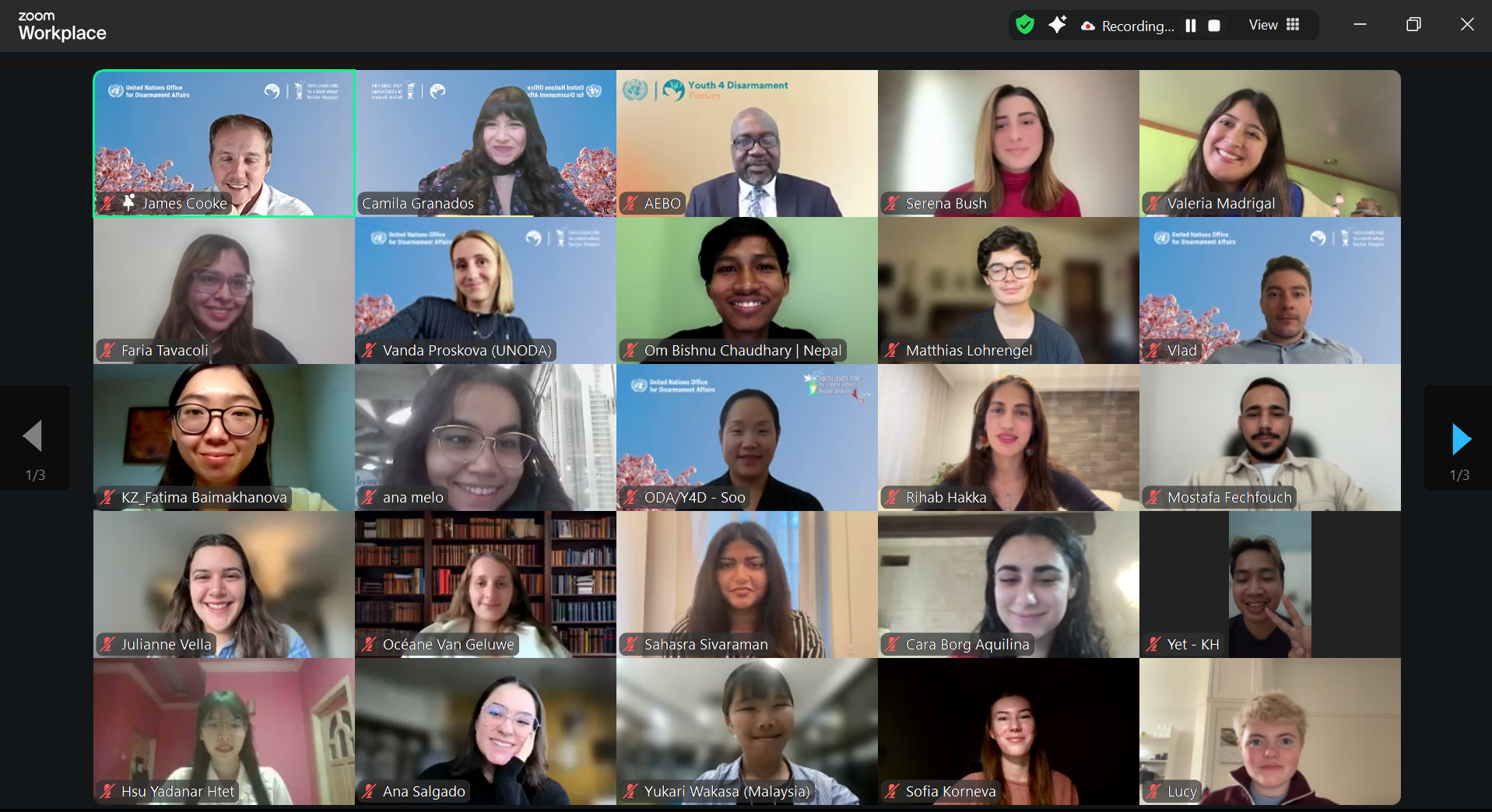 El 6 de noviembre de 2025, la segunda cohorte del Fondo de Jóvenes Líderes por un Mundo sin Armas Nucleares (YLF) de la Oficina de Asuntos de Desarme de la ONU se reunió para celebrar la finalización de su formación en línea. A través del programa, financiado por el Gobierno de Japón, 100 participantes seleccionados de 62 países aprendieron sobre el desarme nuclear y la no proliferación, la maquinaria de desarme de la ONU y los impactos únicos de las armas nucleares en diversas poblaciones - desarrollando habilidades de liderazgo para avanzar en los esfuerzos de desarme.